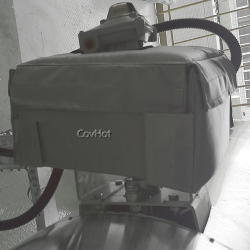 柔性防火罩特为所需保护的零件、执行器、阀门、储槽和管道的形状而专门设计和量身定做。可为控制器、阀杆、钢框架和按钮建立凹进处和孔洞;防火罩为特殊定制,可根据客户需求在所需位置开设穿过电源线的通孔,且在安装前可随时进行修改。防火罩外观可采用不同颜色织物制作,以便在系统不同区域内区分自动操作和方便操作人员在紧急状况下操作。